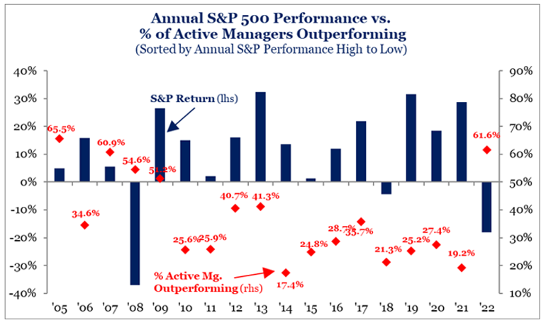 After a lacklustre decade that saw many active managers go to the wall or simply give up, 2022 brought some long-awaited cheer for stockpickers who had their best year since 2009. The not-so-good news is more than one in three failed to beat their target index[1].